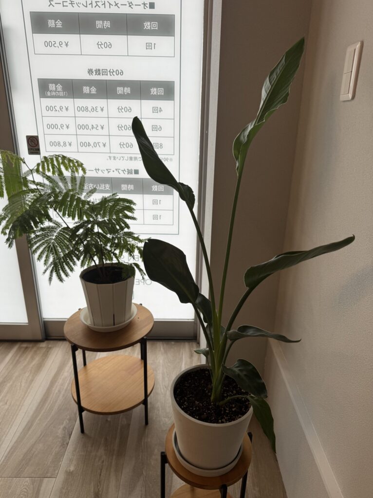入り口と店内には観葉植物があり、観葉植物に囲まれた空間で身も心も癒されます🌿