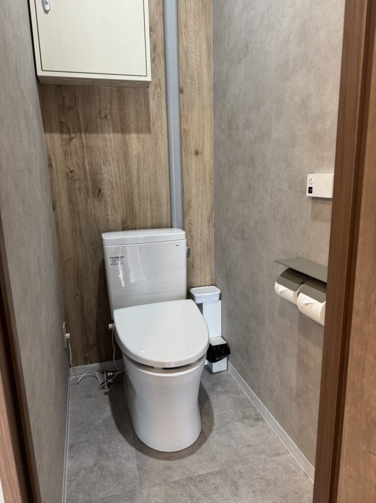 更衣室には大きな姿鏡があり広々お使いいただけます。店内にお手洗いも完備しています。