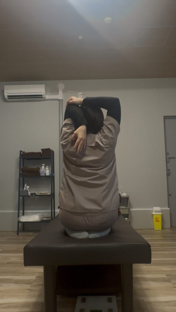 まずは、固まった脇の下から肩甲骨周りを伸ばしていきましょう。